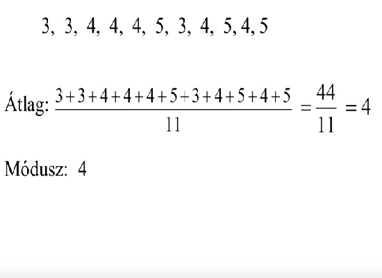 A módusz a leggyakoribb érték, a medián a középső érték, az átlag minden adat összege osztva az elemszámmal.